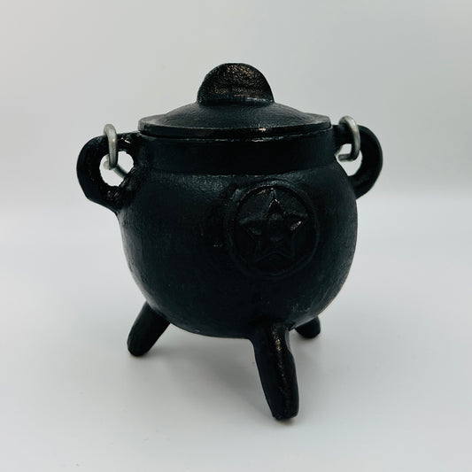 Black Cast Iron Cauldron with Pentacle / Pentagram
