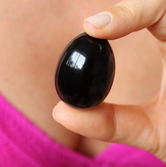 Yoni eggs are precisely a crystal shaped like an egg, which is used deep inside the vagina to strengthen, tone, heal and massage the pelvic floor. The crystal is used as a weight in squats to provide resistance to strengthen the pelvic floor muscles, which helps with bladder control, vaginal wetness, sex drive and postpartum healing.