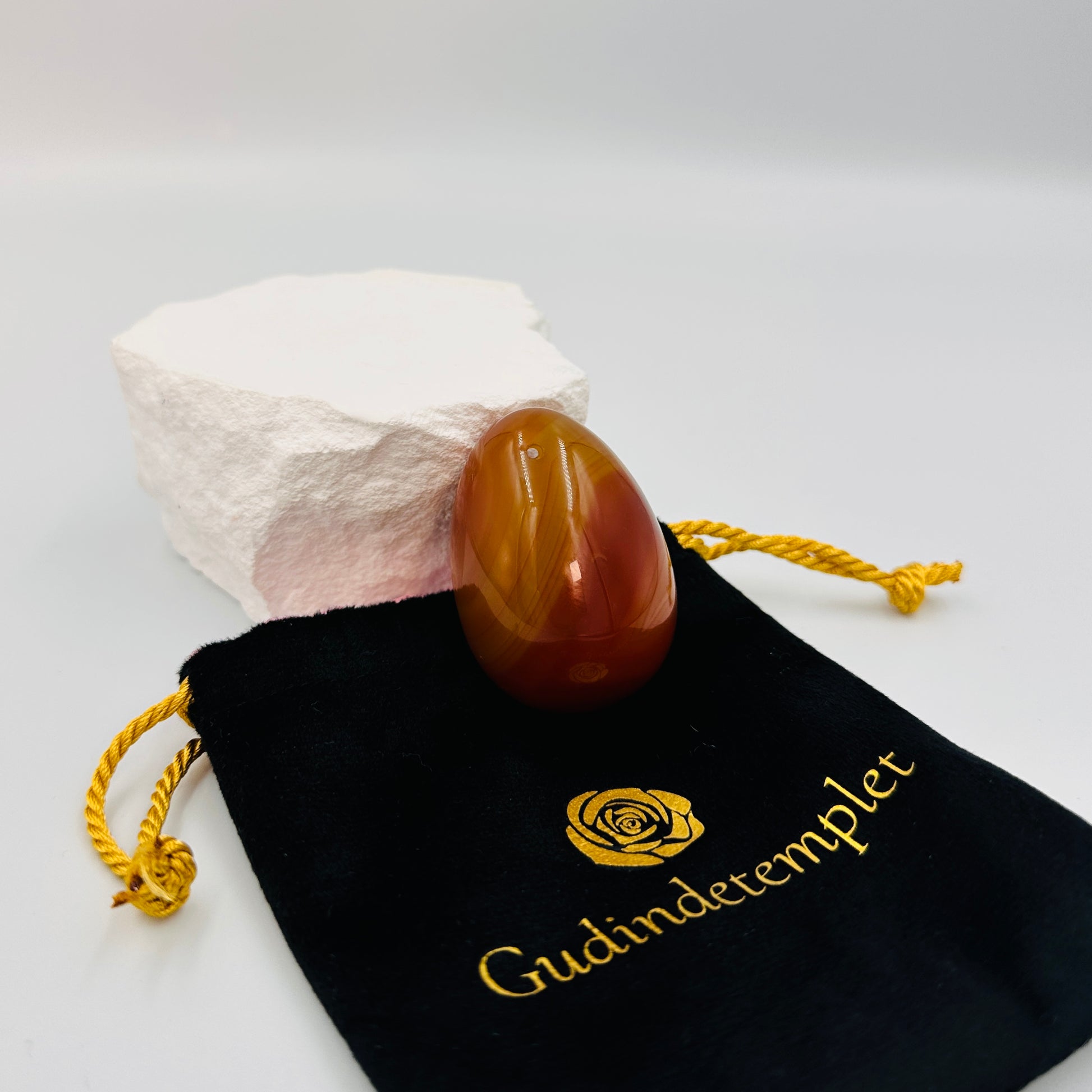 - A genuine red carnelian yoni egg, drilled through the thin end so you can insert a string for advanced exercises or for easy removal