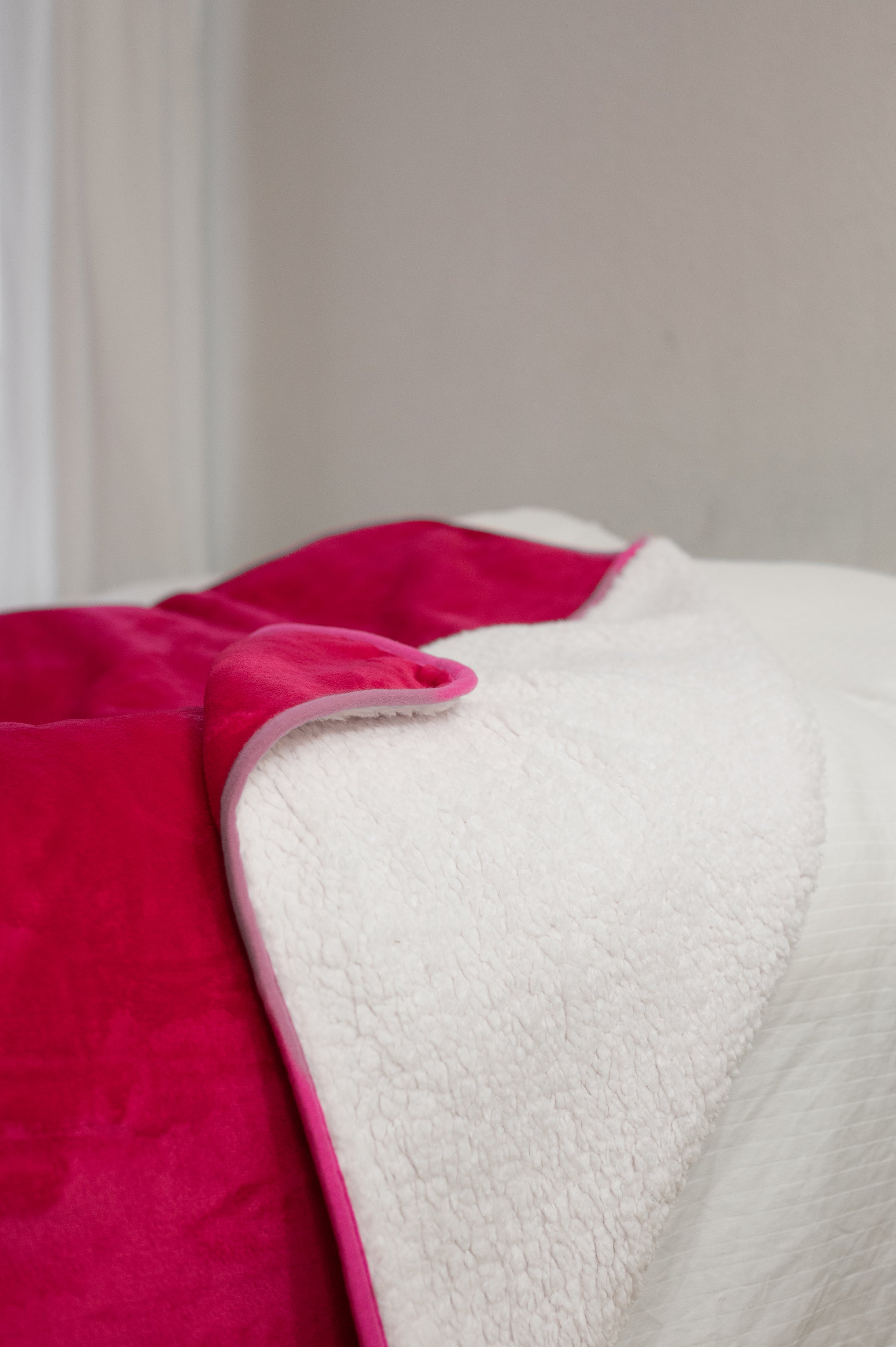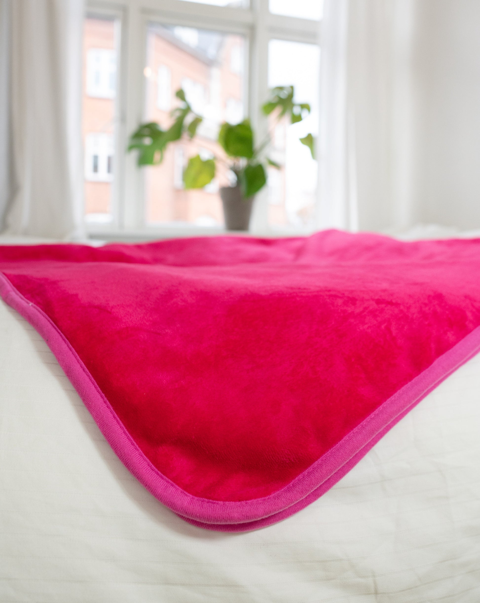 Lying naked on the blanket is pure luxury for the sensitive skin on your buttocks, thighs, womb, and vulva. It's such a gift you deserve to give to yourself and your female body – and to your girlfriend, sister, or mother. With soft white fleece on one side and silky magenta velour on the other, you'll want to snuggle into it.