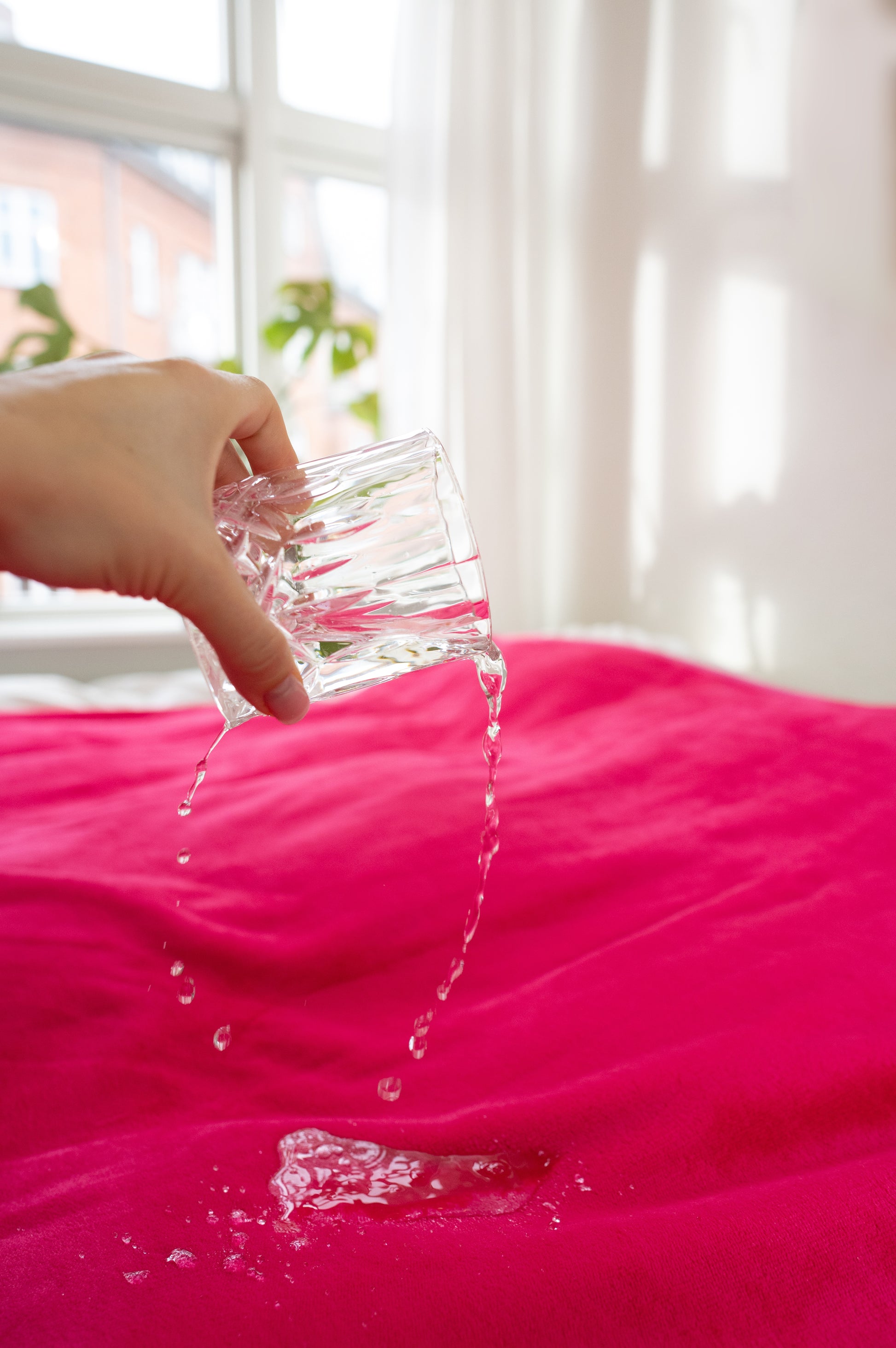 Tæppet mangler sugeevne, da væskerne løber ud over, og ned i sengen.