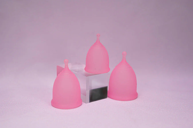 - En menstruationskop i din fortrukne størrelse enten x-small, medium-large eller large. Vælg mellem farven gennemsigtig lyserød eller regnbuefarvet