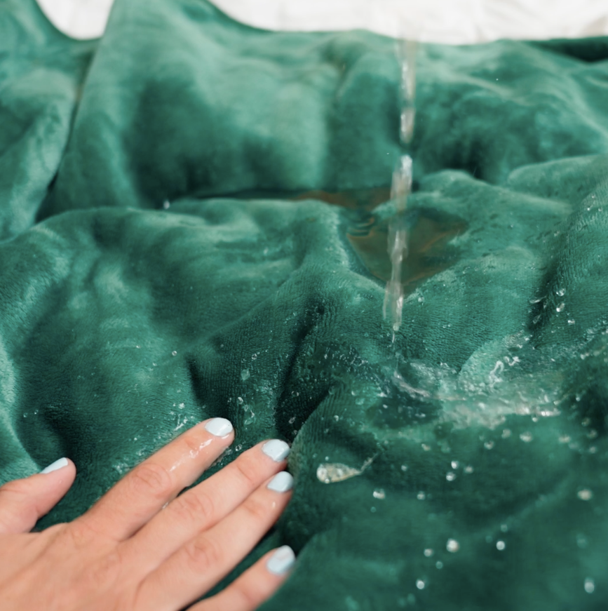 Takket være det indre lag af termoplastisk polyurethan (TPU) kan tæppet modstå væsker og forhindre det i at sive igennem ned til lagner og møbler. Faktisk kan tæppet holde på op til 1 liter væske, og afhængigt af størrelsen kan det endda holde på meget mere. I modsætning til andre vandtætte tæpper, hvor væsken ofte ligger ovenpå, siver væsken ned i Gudindetæppet, hvilket giver dig mulighed for at nyde tæppet, selv når det er vådt. Derudover er det modstandsdygtigt over for pletter og er ideelt til friblødning, fødsel, postpartum og andre rodede aktiviteter.